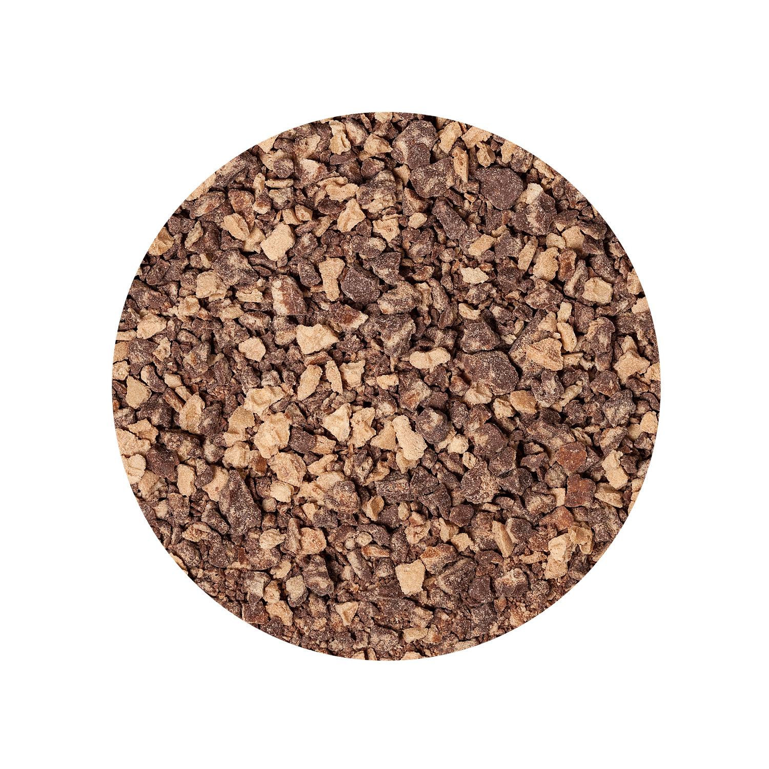 Wafer (30%) filled with cocoa filling in milk chocolate (30%) - crushed pieces. Confectionery suitable for decorating ice cream.